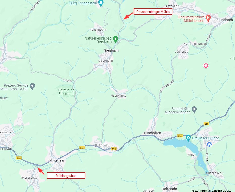 Siegbach: Die Siegbach beginnt unterhalb der Pauschenberger Mühle und mündet in die Aar.
